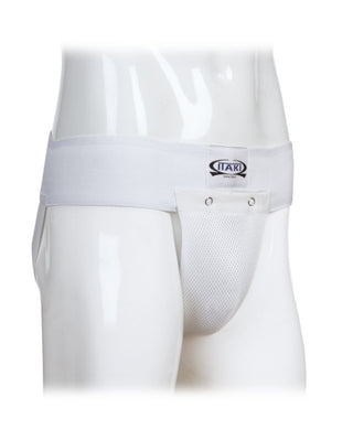 La Coquille en plastique Itaki Art. 406A Blanc est une protection utilisée dans les sports de combat pour sauvegarder les parties intimes. En coton élastique et polyester, la Coquille interne est amovible pour le lavage.