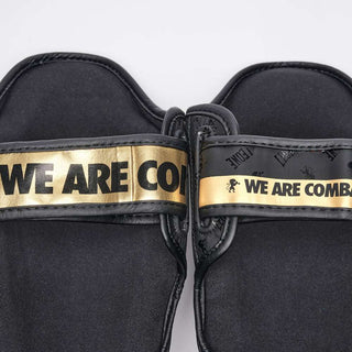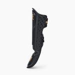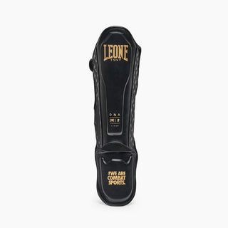 Les Protège-tibias Leone DNA PT177 sont des Protections conçus pour les entraînements de Kick boxing, Muay Thai, MMA. Grâce au design anatomique, ils enveloppent efficacement les muscles des jambes et les tibias. Le système de fermeture est composé de velcro et de bandes élastiques, afin d'offrir stabilité et ajustement ferme. Dans la zone du tibia, il y a un rembourrage supplémentaire conçu pour offrir une meilleure absorption des coups. Noirs avec des détails dorés, les Protège-tibias Leone DNA ont un look élégant et précieux.