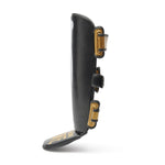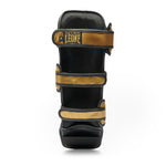 Les Protège-tibias Leone Iuter PT01IU avec protège-pieds sont des Protections pour Kick boxing, Muay Thai et MMA. Réalisés avec un revêtement en polyuréthane et polyester, ils offrent un design anatomique conçu pour envelopper les bandes musculaires de la jambe et le tibia. Les fermetures en velcro et l'élastique sous le pied garantissent stabilité et confort pendant l'utilisation. La doublure en polyester et coton et le rembourrage en EVA assurent une excellente protection et absorption des chocs. Issus de la collaboration avec IUTER, marque indépendante milanaise, ces Protège-tibias allient fonctionnalité et style inimitable. Les détails dorés et les graphismes représentant la radiographie d'un tibia vous offrent un look recherché et original. Parfaits pour les athlètes de niveau expert.