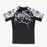 Le Rashguard Manto Debza à Manches Courtes Noire naît de la collaboration exclusive entre MANTO et l'artiste DEBZA, alliant fonctionnalité et design artistique. Idéale pour des entraînements intensifs de grappling, BJJ et MMA, cette rashguard offre un ajustement serré et confortable grâce à la construction à 6 panneaux et aux coutures élastiques plates qui préviennent les irritations cutanées. Réalisée en un mélange de 84% polyester et 16% élasthanne, elle garantit résistance, élasticité et confort pendant les mouvements les plus intenses. L'impression sublimée assure des graphismes vifs et durables, gardant le vêtement comme neuf même après de nombreux lavages. Parfaite pour ceux qui recherchent des performances techniques de haut niveau avec un style unique et distinctif.